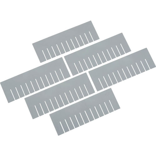 Width Divider DS93060 for Plastic Dividable Grid Container DG93060, Price for Pack of 6 Durable, corrosion resistant plastic dividers help compartmentalize your grid boxes for efficient, organized storage. Dividers are slotted to accept cross interlocking with Length Dividers (sold separately). Dividers are gray and sold in packages of 6.