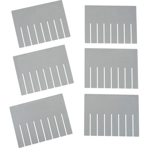Width Divider DS92080 for Plastic Dividable Grid Container DG92080, Price for Pack of 6 Durable, corrosion resistant plastic dividers help compartmentalize your grid boxes for efficient, organized storage. Dividers are slotted to accept cross interlocking with Length Dividers (sold separately). Dividers are gray and sold in packages of 6.