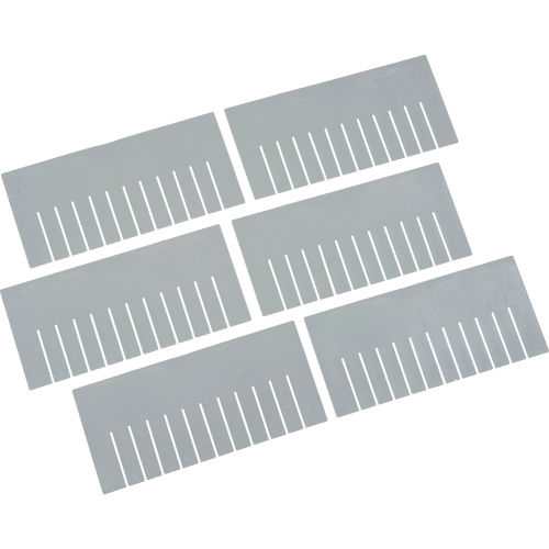 Width Divider DS93080 for Plastic Dividable Grid Container DG93080, Price for Pack of 6 Durable, corrosion resistant plastic dividers help compartmentalize your grid boxes for efficient, organized storage. Dividers are slotted to accept cross interlocking with Length Dividers (sold separately). Dividers are gray and sold in packages of 6.