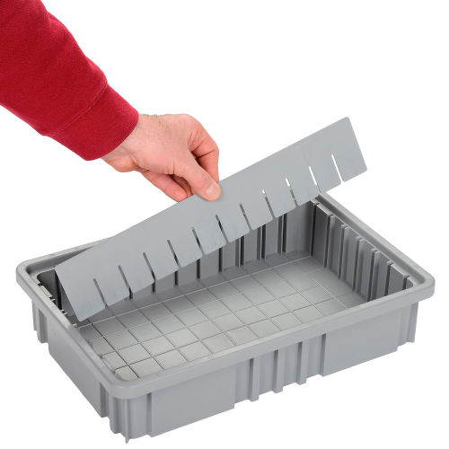 Length Divider DL92035 for Plastic Dividable Grid Container DG92035, Price for Pack of 6 Durable, corrosion resistant plastic dividers help compartmentalize your grid boxes for efficient, organized storage. Dividers are slotted to accept cross interlocking with Width Dividers (sold separately). Dividers are gray and sold in packages of 6.