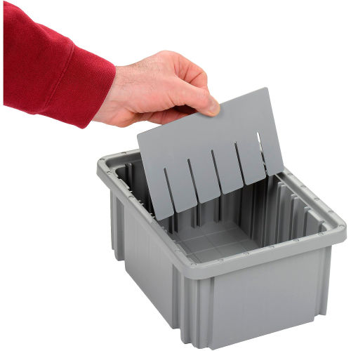 Width Divider DS91050 for Plastic Dividable Grid Container DG91050, Price for Pack of 6 Durable, corrosion resistant plastic dividers help compartmentalize your grid boxes for efficient, organized storage. Dividers are slotted to accept cross interlocking with Length Dividers (sold separately). Dividers are gray and sold in packages of 6.