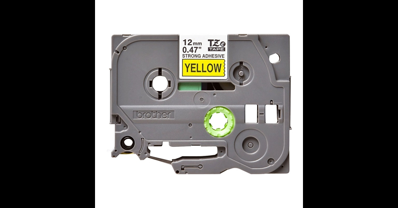 Use these extra-strength label tape cartridges that provide up to 26. 2-feet of labeling and boast a powerful adhesive designed to stick to rough, textured or uneven surfaces. These Brother industrial label tape cartridges print black text on a yellow background. Create labels for home, work, or school with this 0. 47"W x 26. 2'L label tape. Black print on yellow tape for easy identification. Compatible with: P-Touch GL-H100, H105, PT-1005, PT-1010, 1080 (see expanded description for more). Thermal print technology requires no ink or toner. Safety Data Sheet . Create black-on-yellow printed labels with these Brother TZES industrial label tape cartridges.