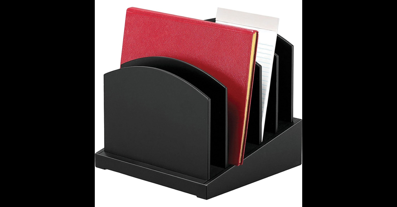 Victor Wood desk accessories incline file in midnightcolor has 5 full sized, solid wood file slots for an added storage. Incline file features removable solid dividers that facilitates slot size adjustment. Dimensions: 9-3/4"H X 9-3/4"W X 9-3/4"D. Incline design for easy viewing and access of files. Five full sized, solid wood file slots. Solid dividers are removable for adjustable slot size. Incline file sorter. 5 compartments. Black wood construction. Attractive and sturdy wood desk accessory holds files, letters, notebooks, or papers. Solid dividers are removable for slot size adjustments. Rubber feet and solid 4. 6 lb. construction reduce movement. Smoothmatte finish is double coated for durability . Victor Wood desk accessories incline file in midnightcolor features incline design for easy viewing and access of files.