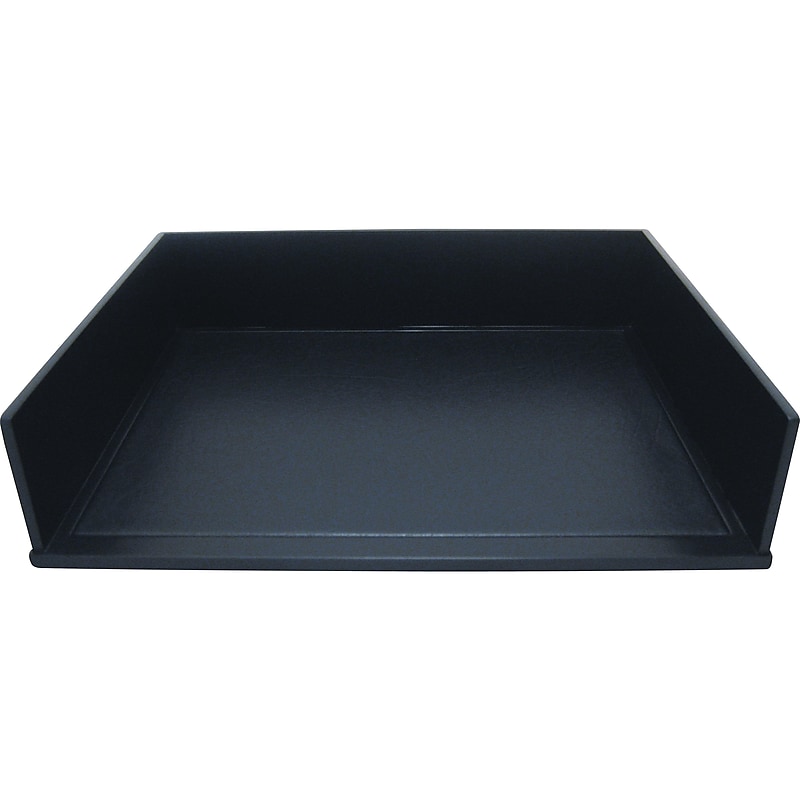 Keep important papers neat and organized with this letter tray, which is made of solid wood for years-long durability. This Victor letter tray comes with non-slip rubber feet, which guard your work desk against nicks, scrapes, and scratches. Create a stylish and convenient desktop organization system using these side-loading letter trays. Features sturdy wood construction, which is stylish, practical, and elegant, and a durable double-coated smoothmatte finish for durability. Dimensions: 3. 1"H x 13. 2"W x 10. 6"D. Holds letter-size documents and folders. Letter trays nest securely on top of one another for solid stacking up to five high. Faux leather top keeps papers in place for filing and adds a touch of class. Non-slip rubber feet reduce movement and protect your work surface from scratches and scuffs. 90-day manufacturer limited warranty. Provide a professional space for work papers with this Victor Midnight Black Collection wood desk letter tray.