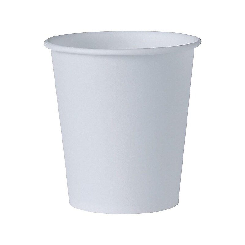 Ensure coworkers and customers stay hydrated during the day with these disposablecups. The paper construction is durable for a single use, and the 3-ounce capacity helps reduce waste. This carton contains 5,000 Solo wax-coated cups and provides a long-lasting supply for the workplace. Cold cups for convenient holding of cold beverages. White in color and made from paper. Cup comes with oz. capacity and is perfect for sampling. Contains 5000 cold cups per carton. Wax coated and treated paper cups offer superior rigidity for your cold beverage needs. Made with at least 70% plant-based renewable resources. Meets or exceeds ASTM D6868 standard. Keep the water cooler at your office stocked with this 5000-pack of Solo 3-ounce paper water cups.