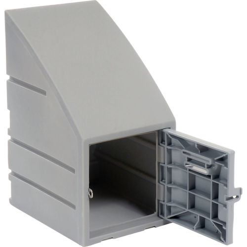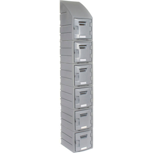Rugged plastic lockers withstand food service wash-downs and are ideal for damp conditions like pools or ice rinks because they cannot rust or corrode. Because they also operate quietly, they're ideal for schools. Includes louvers, double-walled doors and a number plate. This tier model has a sloped top. Gray color. These stackable units can be mixed and matched to create your own configurations. Lockers are priced and ordered per opening. Order 6 units to configure a 6-tier locker. For sloped top 6 tier lockers, order 1 slope top and 5 flat top opening.