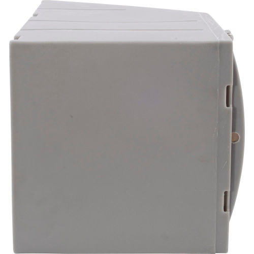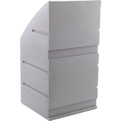 Rugged plastic lockers withstand food service wash-downs and are ideal for damp conditions like pools or ice rinks because they cannot rust or corrode. Because they also operate quietly, they're ideal for schools. Includes louvers, double-walled doors and a number plate. This tier model has a flat top. These stackable units can be mixed and matched to create your own configurations. Gray color. Lockers are priced and ordered per opening. Order 4 units to configure a four-tier locker. For sloped top 2 tier lockers, order 1 slope top and 1 flat top opening.. For sloped top 4 tier lockers, order 1 slope top and 3 flat top opening.