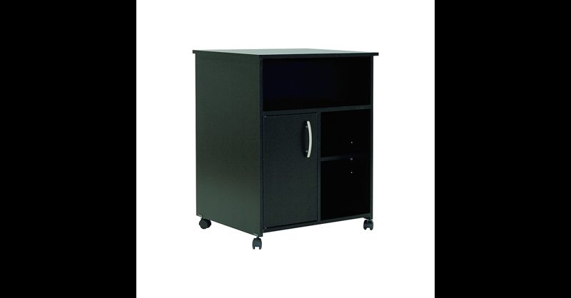Enhance your home office or workspace with this printer stand. The black, neutral finish lets this stand fit into many different types of setups, and the modern, clean design features sleek metal hardware, providing a contemporary and sophisticated appearance. The adjustable shelf has a weight capacity of up to 15 pounds and makes it easy to accommodate your specific needs, while the storage door lets you close off visibility, so you can keep contents private or hide unsightly clutter. With multiple storage options, this printer stand provides plenty of room for papers, pencils, and other office essentials, while the tabletop offers a nice, flat surface for the printer to sit on. This South Shore Axess black printer stand is just the right height for you to easily access stored accessories or printed documents, providing an efficient, enjoyable work environment. Mobile printer stands are a great way to store a laser or inkjet printer.and features MDF construction with laminated wood finish. Three shelves and one compartment with storage door. Four swivel wheels make moving and positioning the mobile stand simple. Dimensions: 29. 5"H x 23. 5"W x 19. 5"D. Assembly required. 5-year manufacturer limited warranty. ⚠ WARNING: This product can expose you to chemicals including formaldehyde, wich is known to the State of California to cause cancer or birth defects or other reproductive harm. For more information, go to www. p65warnings. ca. gov/furniture. Provide more storage options and convenient printer placement with this South Shore Axess black printer stand.