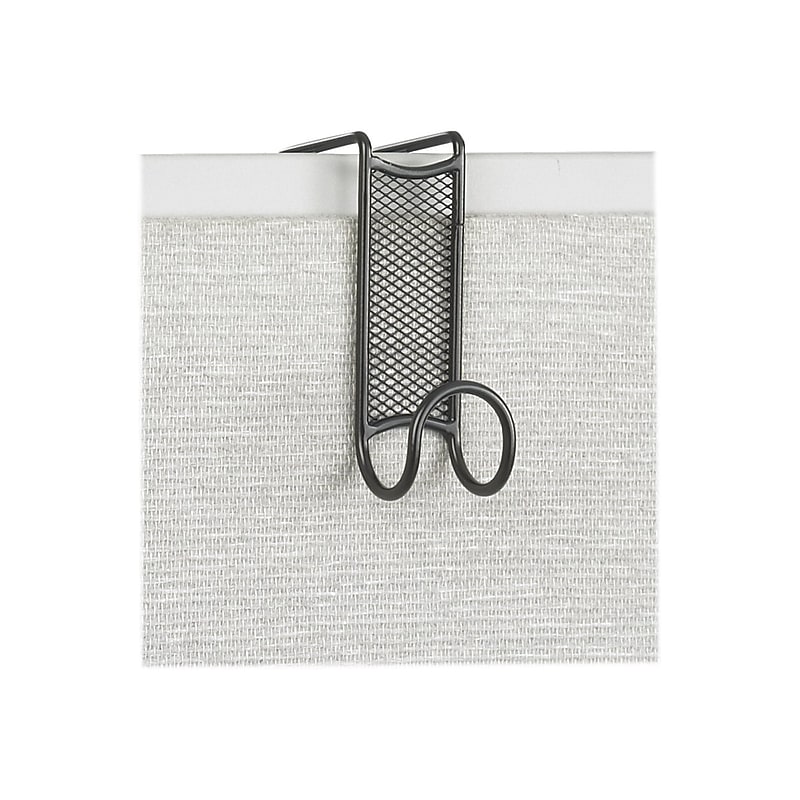 Hang this Onyx coat hook over any partition wall or door to create a sturdy place to hang a purse or coat. The metal construction makes the hook durable, while thecolor lets it blend in seamlessly with any color scheme. The curved hook design on the end of the Safco Onyx coat hook keeps items from being snagged or punctured when they are hung. Over-panel hook with wire mesh construction and curved hook. Made ofmetal. Dimensions: 5"H x 4. 25"W x 1. 75"D. This hook is sold one per package. Fits over partitions and doors up to 1. 5" to 2. 5" thick. Meets or exceeds GREENGUARD standard. Keep your office organized by hanging coats and purses on this Safco Onyx coat hook.