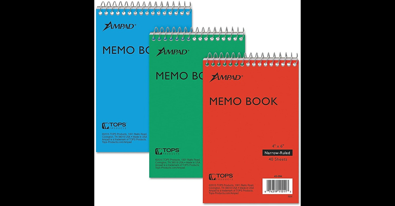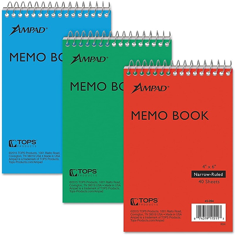 Buy Ampad Memo Books, 6", Narrow Ruled,Colors, 40 Sheets/Pad, 3 Pads/Pack (AMP45094) for $16.00 at @ Globalindustrial.com