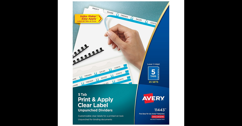 Buy Avery Index Maker Unpunched Paper Dividers with Print & Apply Label Sheets, 5 Tabs, 25 Sets/Pack () for $169.95 at @ Globalindustrial.com