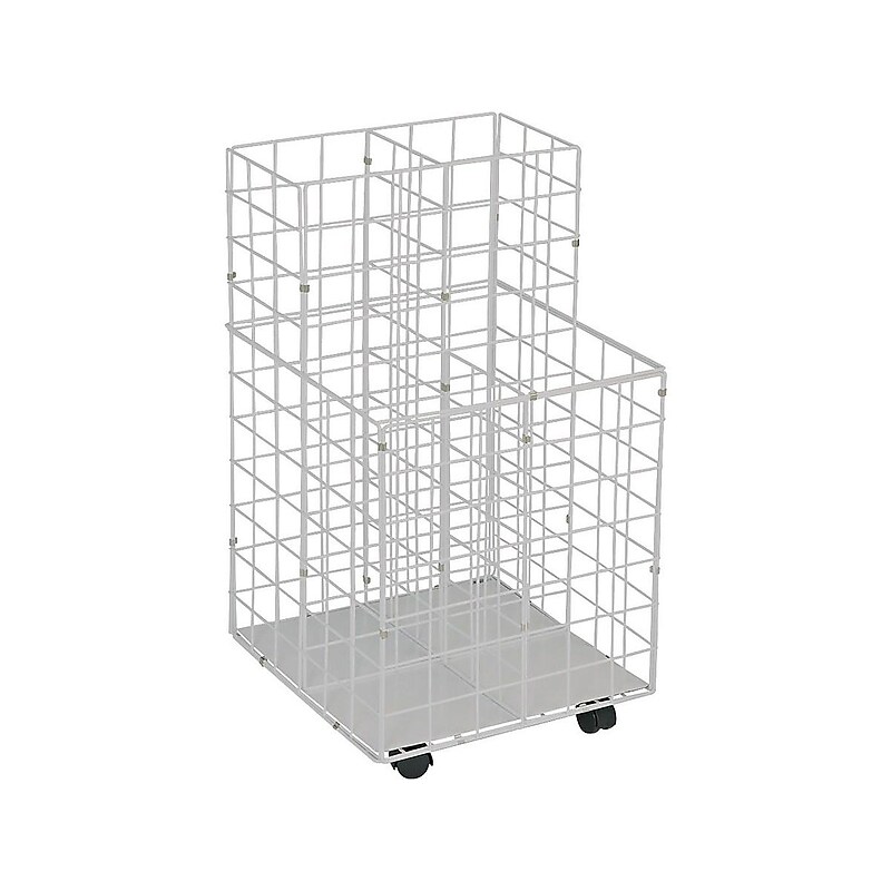 Carry plans and blueprints easily using this heavy-gauge, plastic-coated steel rod cart. This Safco roll file includes four compartments that provide ample space for multiple items and all-surface casters that make transporting simple. Wire file cart for holding rolled documents. Heavy-gauge steel rod withplastic coating. Four vertical 8" tube compartments for rulled documents, file tubes, and the like. Standing base type. Dimensions: 30. 5"H x 16. 25"W x 16. 5"D. Meets or exceeds ANSI/BIFMA standard. Keep large documents like plans and drawings for your business organized with this Safco wire cart.