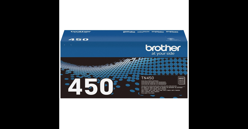 Keep your office printer ready for everyday use with this genuine Brother high-yieldtoner cartridge. Professional mono laser print quality delivers clear, easy-to-read documents, while the 2,600-page yield* reduces the need for regular printer maintenance. This toner features boldink, which stands out on both white and color paper. With its simple design, this cartridge offers fast, easy installation in select compatible Brother printers, copiers and fax machines. Compatible with Brother DCP-7060D, DCP-7065DN, IntelliFax-2840, IntelliFAX-2940, HL-2220, HL-2230, HL-2240, HL-2240D, HL-2270DW, HL-2275DW, HL-2280DW, MFC-7240, MFC-7360N, MFC-7365DN, MFC-7460DN, MFC-7860DW. High-yield toner cartridge. Page Yield of up to 2,600 pages*. Intelligently engineered as part of a complete printing system to work seamlessly with your Brother printer. Brother Genuine TN450 Black High-Yield Toner Cartridge. Brother Genuine toner produces superior quality results that withstand the test of time. Brother offers an environmentally responsible way to dispose of Brother Genuine cartridges. Safety Data Sheet . Make quick work of big print jobs with this genuine Brother TN450 high-yieldtoner cartridge.