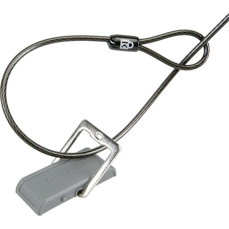 Add a secure anchor point to any work surface, providing employees with a convenient and easily accessible place to lock down their computer. The Kensington Desk Mount Cable Anchor attaches via either industrial-strength mounting tape or security screws. Provides a secure anchor to any work surface. Full steel construction base plate and ring with corrosion resistant chrome plating. 2 x 3/4" one way slotted security woodscrews (self drilling) for maximum security. Convenient to use means no more searching for a strong anchor point under your desk or workstation. Industrial strength mounting tape provided for situations where screwing holes is not an option. Convenient to use means no more searching for a strong anchor point under your desk or workstation. Tamper-resistant features include 2 one-way security screws and full steel construction prevents cutting. TAA Compliant. Attractive design complements modern office dcor. Built-in Kensington security slot. Maximum footprint: 1/2" H (Ring Down) - 2 1/4" (Ring Up) x 3 1/2" W x 1 3/4" D. Kensington Desk Mount Security Anchor Point.