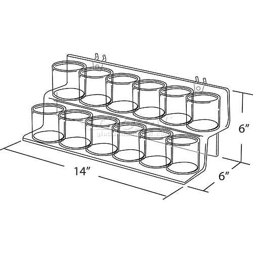 Global Approved 2-Tier Cup Display For Pegboard/Slatwall, 6", Acrylic ,1 Piece
