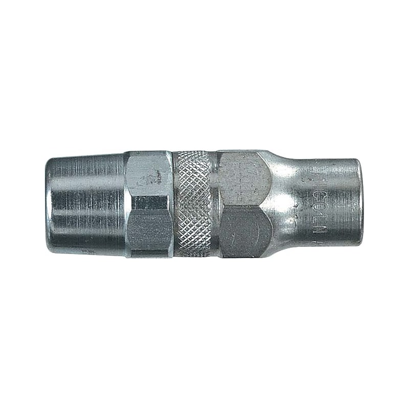 Lincoln Heavy duty grease coupler of 11/16" hex and features built-in ball-check that prevents leak. Coupler features 1/8" NPT male inlet adapter connection and operating pressure of 7500 psig. Size: 11/16 hex. Operating pressure: 7500 psi [max]. Connection: 1/8 NPT male inlet adapter. Small outside diameter permits easy contact with recessed fittings. Built-in ball-check prevents leak and lubricant backup. For all hydraulic type grease fittings. Lincoln Heavy Duty Grease Coupler features small outside diameter that permits easy contact with recessed fittings.