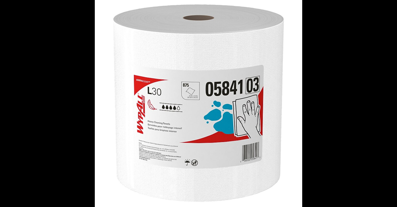 Keep this jumbo roll of cleaning wipes in high-traffic areas for all-day use. The sturdy cloth-like material is durable enough for messy spills but soft enough for use on faces and hands. Each WypAll wet wipe is large enough so messes can be cleaned with just one sheet. 875 Sheets/Roll; 1 Jumbo Roll of WypAll GeneralClean L30 Heavy Duty Cleaning Towels/Case; 875 Sheets/Case; Strong and Soft Towels. This heavy-duty cleaning towel has a cloth-like feel. Features a plush, soft surface with pockets in the inner layer to enhance absorbency. Soft enough for personal use on hands and skin. (Not for use on compromised skin or patient wiping. ). Soft and absorbent; great for wiping up spills. Maintain a clean, sanitary workspace with this 875-sheet roll of WypAll general-purpose wipers.
