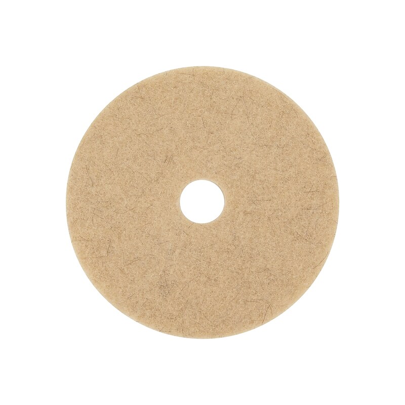 For use on harder finishes or in high-traffic areas. Removes scratches and marks while it polishes. Used for buffing or limited spray cleaning on harder finishes and high traffic conditions. 20". Blend of natural and synthetic fibers in a non-woven web having resins throughout and bonded to the web structure. This product can be used on: VCT, LVT, Sheet Vinyl Flooring, Linoleum. This product can be used on: VCT, LVT, VAT, Asphalt Asbestos Tile, Sheet Vinyl Flooring, Linoleum, Rubber, Cork, Natural Stone, Terazzo. Removes marks and scuffs while polishing. Contains a minimum of 50% post consumer recycled content. The recycled polyester used is third party certified for post consumer recycled content. Natural hair and synthetic fiber pad designed for optimum mark removal.