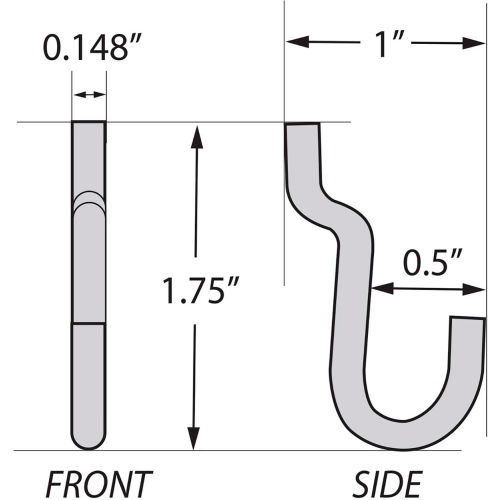 Metal J Hook for Slatwall & Pegboard. Galvanized Finish. D x 1.75"H, 0.148 hook diameter.