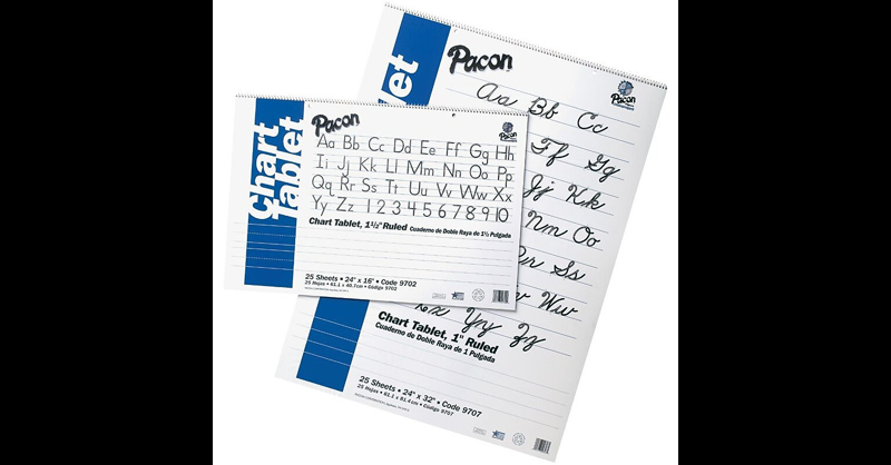 Perfect for classroom demonstrations of handwriting, this chart tablet has white sulfite bond paper and a stiff cover. For classroom demonstrations of handwriting. White sulphite bond paper is spiralbound to stiff covers. Two-hole punched and ruled on both sides. Pages are two-hole punched. Glued Pad Top. No Cover.