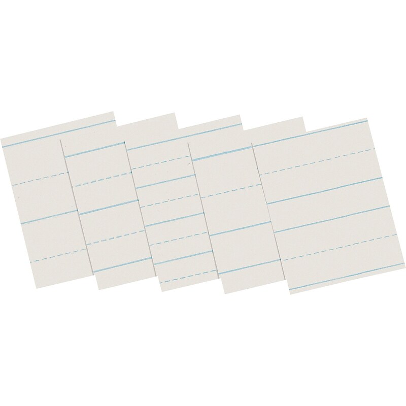 Skip-A-Line Ruled Newsprint offers a ruled format to help third-grade students practice writing and hone their technique. Letter-size sheets in landscape orientation are ruled 1/2" the long way. Cleannewsprint has light blue ruling on both sides. 1/4" dotted midline serves as a guide for controlled writing, and 1/2" skip space allows room for letter descenders. Ruled practice paper is recyclable. Ruled format to help students practice writing. Landscape orientation. Cleannewsprint. Recyclable. 500 Sheet - 30lb - Ruled - Letter 8. 5" - 500 / Ream - White.