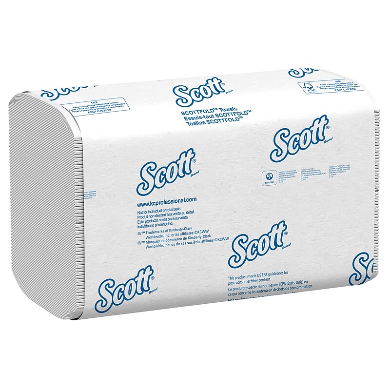 Get a high-quality cleaning and hand-drying experience with these paper towel rolls. Each one dispenses a single sheet at a time to reduce waste, and it's easy to install into dispensers. Thanks to the perforated sheets, ripped edges are smooth, and with 25 rolls in a case, it's easy to stock up. These Scott Pro paper towels areto make it simple to see when they're dirty, while the soft texture ensures they're comfortable to use on hands. 175 Sheets/Pack, 25 Scott Pro Scottfold Multifold Paper Towel Packs/Case; 4,375 Sheets/Case; with Absorbency Pockets; 9. 4" x 12. 4" sheets; White; fits Scottfold and universal dispensers. Scott Pro Scottfold Multifold Paper Towels feature a patented fold that creates 2-ply thickness and reduces tearing and tabbing, so your guests and employees will waste less. Thepaper disposable hand towels feature exclusive Absorbency Pockets for better absorbency. Hygienic, touchless dispensing; only touch the drying towel you use. Scott Pro Scottfold Multifold Paper Towels are designed with the purpose to reduce costs. Take care of spills, clean up messes and dry hands with this 25-pack of Scott Pro paper towel rolls.
