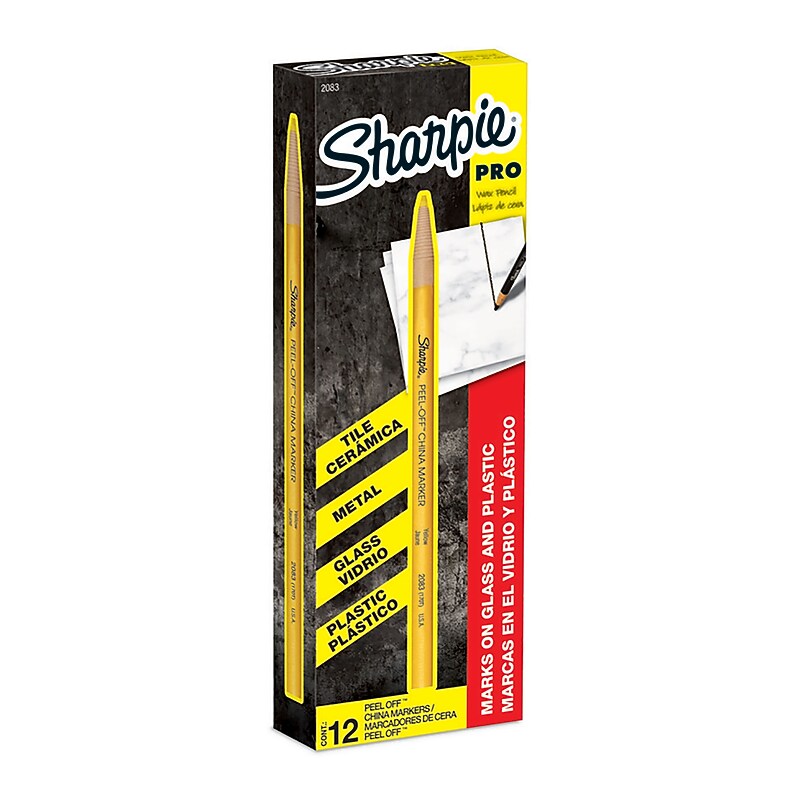 Write on ceramics, china, plastic, metal and glass with these Sharpie Pro Peel-Offchina markers. When the tip starts to dull, simply pull the string and peel down the strip, so no sharpening is required. These Sharpie Pro Peel-Offchina markers make wax marks that are resistant to moisture and fading but wipe clean with a damp cloth. China marker peels for continuous use. Yellow color is attractive and adds a splash of creativity and fun to objects. Bullet tip writes with uniform and defined lines. A dozen markers per pack. No sharpening required - peel the paper wrapping back for more marker. Fade- and moisture-resistant wax-pencil formula creates easy-to-see marks. Erases easily and cleanly with a damp cloth. As this marker is non-toxic, it is extremely safe to use. Mark up a nonporous surface and erase it clean with this 12-pack of Sharpie Pro Peel-Off narrow-pointchina markers.