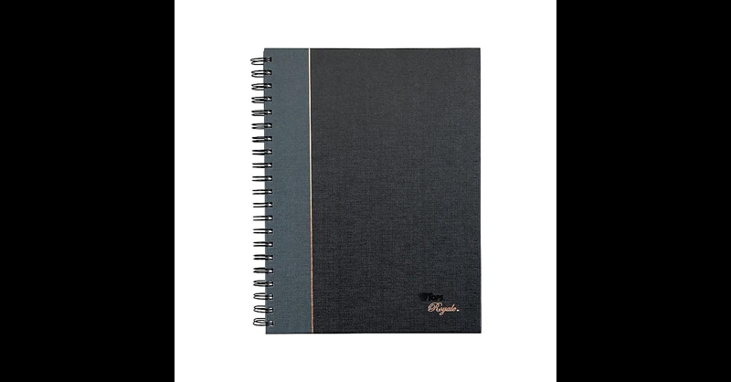 Keep important information recorded in this executive notebook. Blank fields on each page let you add a date, subject or page number, and the heavyweight paper stands up to frequent handling. A double wire binding system keeps sheets flat for easy writing and reading. This TOPS Royale notebook features microperforated edges for clean, rip-free paper removal. An executive notebook lets you organize your way. This 10. 5" notebook has 96 sheets. College-ruled for efficient use of space.gray professional notebook. Micro-perforated sheets for neat and easy sheet removal. Spiral-bound design for easy access of sheets inside. Bring a professional look to your notes and memos with this TOPS Royale black and gray 10. 5 8-inch double wire-bound college-rule executive notebook.