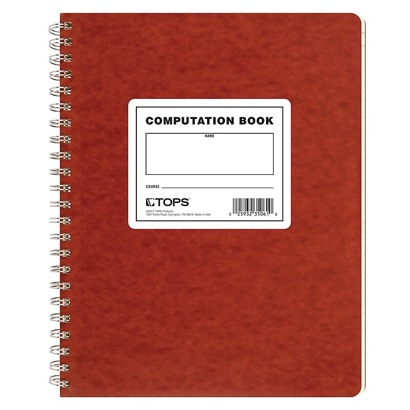 Bring a professional look to research, mathematical or design work with this computation notebook. The quad-rule layout is ideal for creating charts and graphs, while the double wire binding allows for a smooth, catch-free page turns. Numbered pages make it easy to reference previously recorded notes and results. Featuring a blank form on the front, this TOPS computation notebook lets you add a subject label or dates. Computation notebooks let you organize your way. This 9. 5"H 11. 75"L notebook has 76 sheets. Solve mathematical equations or create a scale drawing using a graph-ruled notebook.cover with white paper. Pressboard covers are durable and keep your notes private. Spiral-bound design for easy access of sheets inside. Made in the USA. Record calculations, figures, and design models in this TOPS 11. 75 9. 5-inch quad-rule wire-bound computation notebook.