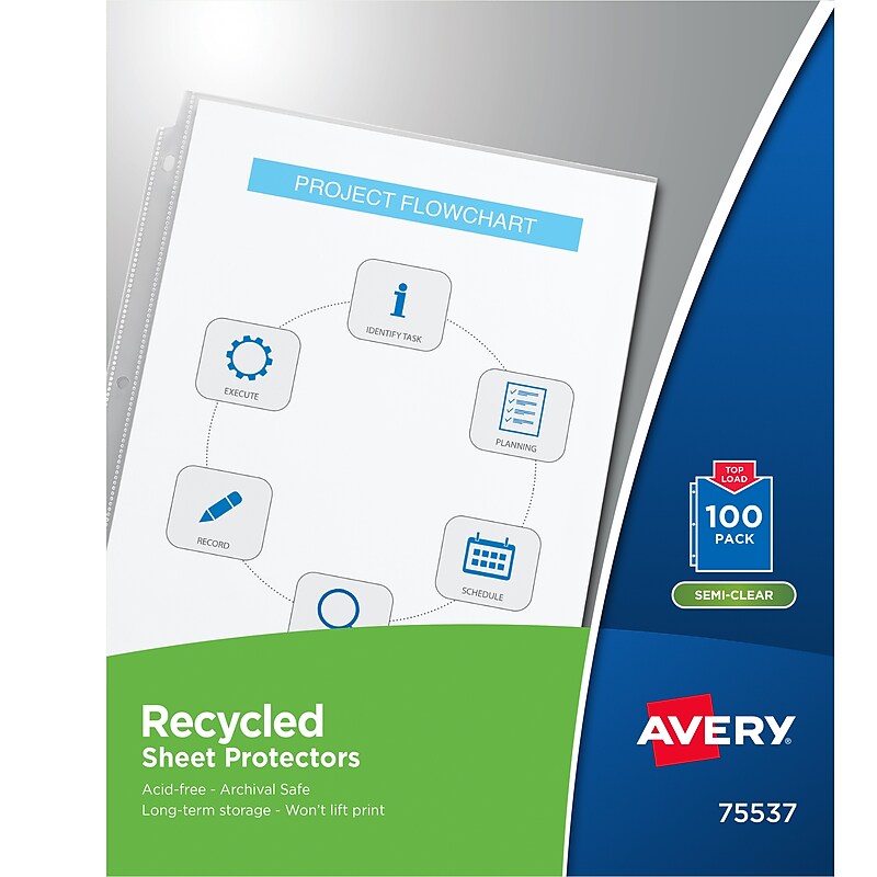 Buy Avery Recycled Economy Weight Sheet Protectors, 8-1/2" 11", Semi-Clear, 100/Box (75537) for $32.95 at @ Globalindustrial.com