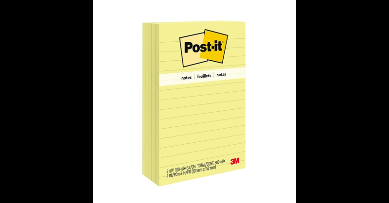 Post-it Notes stick securely and remove cleanly. Americas #1 favorite sticky note, they feature a unique adhesive designed for use on paper. 4 in. 6 in. size is great to make to-do lists to keep in your calendars or planners. Lined notes help your writing stay neat and organized. Classichelps your list stand out. Post-it Notes are recyclable, and the paper in Post-it Notes is sourced from certified, renewable and responsibly managed forests. 5 Pads/Pack, 100 Sheets/Pad. Post-it Notes stick securely and remove cleanly. 4 in 6 in, Canary Yellow, Lined. 5 Pads/Pack, 100 Sheets/Pad. Lined notes help your writing stay neat and organized. Unique adhesive designed for use on paper or in planners. Americas #1 favorite sticky note. Use for to-do lists and longer notes and reminders. Post-it Notes are recyclable. The paper in Post-it Notes is sourced from certified, renewable and responsibly managed forests.