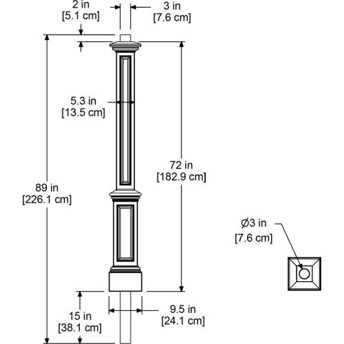 Mayne Signature Lamp Post with Mount, 10"L x 10"W x 90"H, White Light up your life with our Signature lamp post. Our low maintenance polyethylene lamp posts are a great solution to your residential lighting needs. Features: Mayne lamp posts are made from high quality 100% polyethylene with built-in UV inhibitors for long lasting protection from the elementsPackage includes 6 foot decorative post and steel ground mount conduitSteel conduit measures 3 inch in diameter x 89 inches long and accommodates most residential post lampsSteel ground mount should be buried in concrete for secure installationsNote: Light fixture and wiring materials not included15 Year Warranty Residential Application, 5 Year Warranty Commercial ApplicationMade In The USA.