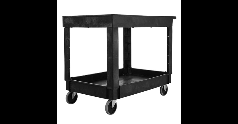 Distribute equipment and other supplies throughout the building or office with this Rubbermaid commercial service cart. With a 500-pound capacity, this cart is capable of transporting heavy loads with ease. The open shelf design allows for easy access to contents while the lipped shelves ensure items stay on the cart and don't fall off. Four swiveling wheels allow for easy maneuvering of this Rubbermaidtwo-shelf utility cart. Utility cart offers plenty of space for moving large quantities of items. Two shelves provide plenty of room and easy access for your stored items. Four swivel 4" casters make moving and positioning the cart simple. Dimensions: 32. 5"H x 25. 6"W x 40. 25"D. Supports up to 500 lbs; 250 lbs per shelf. 4" non-marking swivel casters. 1-year mfr. limited warranty. Transport tools and supplies throughout the facility with this Rubbermaid two-shelf utility cart.