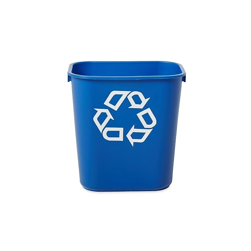 Adopt a reliable recycling solution with this small deskside recycling container. The plastic construction prevents this container from chipping or splitting, while the prominent recycling symbol printed on the side makes it immediately identifiable from traditional trash cans. This Rubbermaid recycling container is small in size, making it perfect for use under a desk. Desk-side recycling bin is space-efficient and economical, making them an easy and effective recycling solution. Features 3. 25 gal. capacity (13 Qt). Made of lightweight and durableplastic. Meets or exceeds OEHHA standard. All-plastic construction won't chip, rust, or dent. Fits under standard-height desk. Recycling options available. Contains 30% post-consumer resin. 12 1/8"H x 8 1/4"W x 11 3/8"D. Keep everything tidy and clean with this Rubbermaid small deskside recycling container.