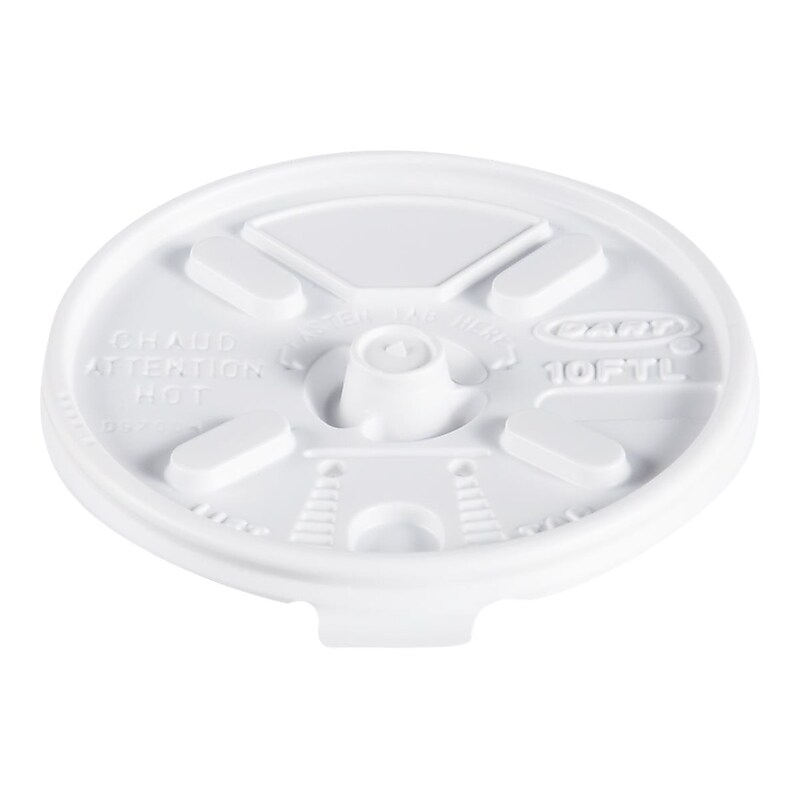 Secure these lids to foam or plastic cups to reduce the chance of spills. These plastic lids seal beverages until they are ready to be enjoyed, keeping hot drinks steaming and cold drinks refreshing. This carton of 1,000 Dart plastic lids is ideal for stocking fast food counters, hotel breakfast buffets and food service carts. Take your drink to-go with these beverage lids for foam cups and containers. Made ofpolystyrene. For 10 oz. cups. Contains 1000 lids per carton. Maintain optimal drink temperatures by using these Dartplastic lids.