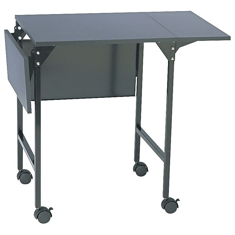 Safco Mobile machine stand with drop leaves color measures 26 3/4" x 36" x 18" and features 4 swivel casters for easy mobility. Stand has laminated top with tubular steel frame for aesthetic look and durability. Versatile, mobile machine stand easily holds printer, fax machine or other office equipment. Black laminate and steel construction. 26 3/4"H x 36"W x 18"D (with leaves opened). Top expands to a 36"W x 18"D work surface by raising two 8" drop leaves. 4 swivel casters, 2 locking. Ready to assemble. Safco Limited Lifetime Warranty. Versatile, mobile machine stand holds printer, fax machine or other office equipment. Tubular steel frame with a 20Wx18"D laminate top expands to a 36Wx18"D worksurface by raising two 8" drop leaves. Modesty panel. Casters, 2 locking. 26-3⁄4"H. Assembly required. Black/black. ⚠ WARNING: This product can expose you to chemicals including Di(2-ethylhexyl) phthalate (DEHP), which is known to the State of California to cause cancer or birth defects or other reproductive harm. For more information go to www. P65Warnings. ca. gov/furniture. Versatile, mobile machine stand easily holds printer, fax machine or other office equipment.