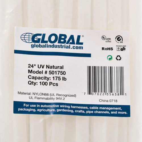 Buy Global Industrial 24" Cable Zip Ties, Natural w/UV, lb, 100 pack for $27.95 at @ Globalindustrial.com
