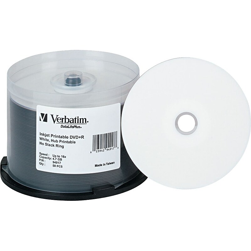 Buy Verbatim DataLifePlus 16x DVD+R,Hub, Inkjet Printable, 50/Pack for $28.95 at @ Globalindustrial.com