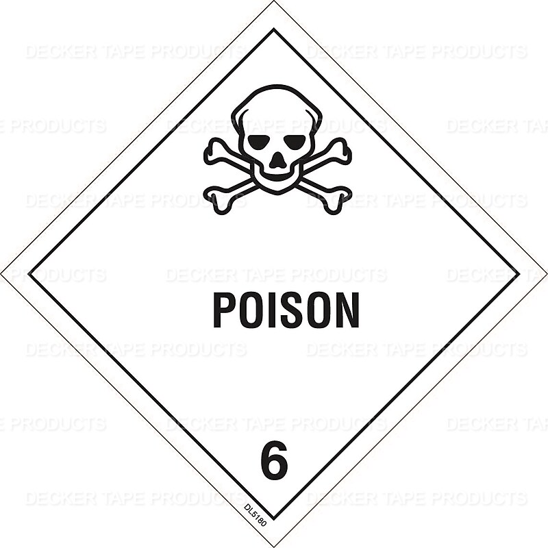 D. O. T. Class 6 Poison labels, comes with 500 labels per Roll. Poison 6. 4". 500/Roll.