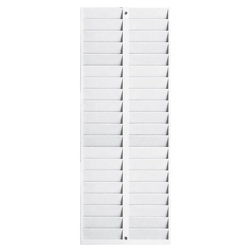 View your employees' status with this badge rack. This rack can hold up to 40 badges or swipe cards at one time, and is an easy way for your employees to store their cards while at work. Made of industrial-grade, lightweight plastic, this badge rack is easy to handle but durable enough to withstand daily use. Time card rack keeps cards in one convenient location. Compatible with: Swipe Card and Proximity Time Clock Systems. With 40 individual pockets, rack offers ample space for individual cards. Dimensions: 22. 63"H x 8. 13"W x 0. 5"D. Comes and made of industrial-grade plastic. Holds up to 40 time cards; compatible card size: 3. 63"W x 2. 13"L. Keep track of up to forty employees at once with this mountable Pyramid 40-pocket badge rack.