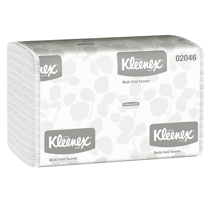 Absorb spills or dry hands with these paper towels. These 1-ply towels fit neatly inside most standard-size paper towel dispensers, and the efficient multifold design reduces waste so you can refill less frequently. Soft and absorbent, these towels are perfect for drying hands, yet the sturdy construction makes them ideal for general-purpose cleaning. With eight packs of 150 towels each, this carton of Kleenex multifold paper towels lets you stock up or supply multiple dispensers with ease. 150 Sheets/Pack, 8 Kleenex Multifold Paper Towel Packs/Case; 1,200 Sheets/Case; 1-Ply; 9. 2" x 9. 4" sheets; fits universal multi-fold towel dispensers. Kleenex Multifold Paper Towels are soft and highly absorbent for reduced waste. Designed to dispense one at a time. They meet EPA minimum standards. These Kleenex towels are FSC and ECOLOGO certified. Stock up for drying hands or wiping up spills with this 8-pack carton of Kleenex white 1-ply multifold paper towels.
