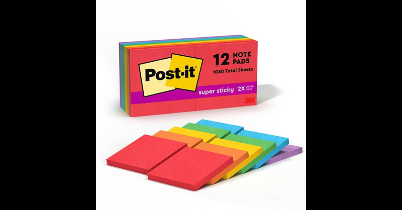 Add joy to the day alongside celebrated rainbow hues from the Playful Primaries collection. Whether jotting down your daily to-do's, brainstorming big ideas, studying or setting reminders, colors and ideas are always brighter together. These sticky notes feature 2X the sticking power. They also stick and re-stick - allowing you to move your notes with you throughout your day. Theyre ideal for walls, doors, windows and other vertical surfaces, and like all Post-it Notes, they stick securely yet remove cleanly without damage. Keep your ideas across your notebooks, classroom books, calendars or other documents. No tape or tacks are needed with adhesive notes, saving you money and time on office products or school supplies. A great memo pad, these are ideal for using for notes or reminders to yourself or others. Post-it Super Sticky Notes are the perfect solution for shopping lists, reminders, notes on computer screens, time tracking, to-do lists, marking cables, color-coding documents, reminding kids to do chores, storyboarding, scratch paper and agile processing. Each notes sheet is approximately 3 in. 3 in. , with 90 sheets per pad and 12 sticky note pads per pack. These colorful sticky notes include colors from the Playful Primaries collection including red, orange, yellow, green, blue and lilac. All Post-it Notes are sourced from certified, renewable and responsibly managed forests, and all Post-it Notes are recyclable, so you can recycle them when they are no longer needed. EXPERIENCE THE POWER OF 2X STICKINESS: Post-it Super Sticky Notes offer twice the sticking power of basic sticky notes, ensuring they stay put and won't fall off. STICK AND RESTICK ANYWHERE: These notes adhere firmly to walls, windows, doors, and other vertical surfaces, allowing you to move your reminders with ease. GET ORGANIZED: Each pack includes 12 pads of 3 in. 3 in. notes, with 90 sheets per pad, great for stocking up your office, work area, or classroom. VERSATILE AND ESSENTIAL: Post-it Super Sticky Notes are the perfect solution for shopping lists, reminders, to-do lists, color-coding, labeling, family chore reminders, brainstorming, storyboarding, and quick notes. VARIOUS SIZES AND SHAPES: Available in different sizes, with or without lines, to cater to your specific needs. EYE-CATCHING COLORS: Vibrant and colorful reminders are more likely to grab attention and be noticed. INTRODUCING THE PLAYFUL PRIMARIES COLLECTION: Add joy to the day alongside celebrated rainbow hues from the Playful Primaries collection including Vital Orange, Sunnyside, Lucky Green, Blue Paradise and Iris Infusion. EXPLORE OUR COLLECTIONS: With 11 color collections, the Post-it Brand offers a wide range of options to suit every style and preference, whether at home, in school, or at the office. TRUST THE ORIGNAL CREATOR: Made in the USA with globally sourced materials, the one and only Post-it Note was invented over 40 years ago by the Post-it Brand. SUSTAINABILITY: Post-it Super Sticky Notes can be recycled. ENHANCE YOUR NOTE-TAKING EXPERIENCE: Download the free Post-it App on your smartphone or tablet to enjoy the simplicity and convenience of Post-it Notes anytime and anywhere.