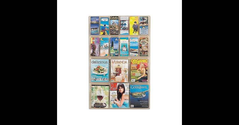 Ensure magazines, brochures and other literature are readily available by storing them in this wall-rack literature display. The plastic construction of this Safco Reveal wall-rack literature display provides durability, and it's so viewing contents is simple. Literature wall holder lets you conveniently display signage to ensure maximum visibility. Clear plastic makes for durability and better visibility. Front loading design with magazine orientation. Dimensions: 45"H x 30"W x 2"D. 18 pockets to place all the literature you wish to display. Rounded edges for a smooth, clean appearance. Can be mounted on a wall for easy viewing. Display various pamphlets and literature with this Safco Reveal clear 12-pamphlet six-magazine wall-rack literature display.
