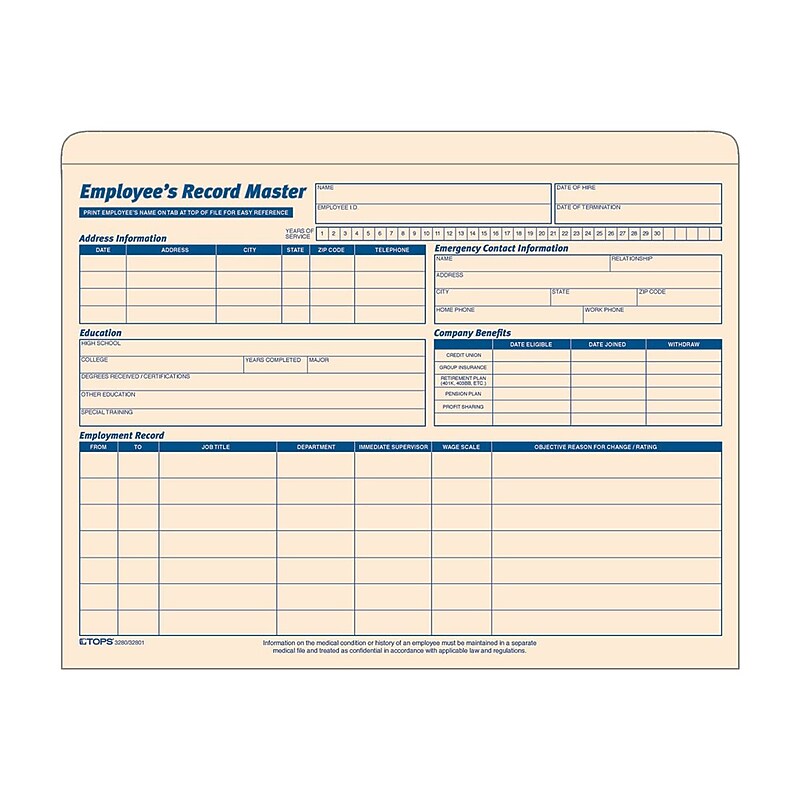 Buy TOPS Employee Record Master File, 20/Pack (TOP ) for $45.95 at @ Globalindustrial.com