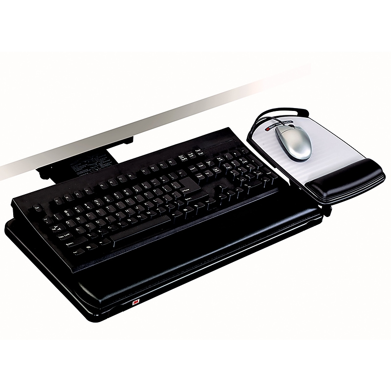 Knob Adjust Keyboard Tray, 26.75" x 10.5" Adjustable Platform, 17.75" Track, Wrist Rest and Mouse Pad ()