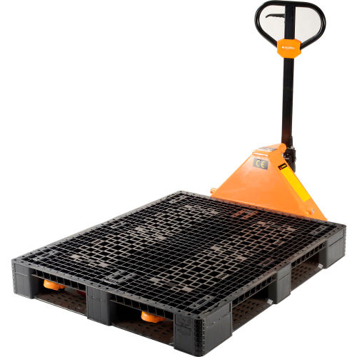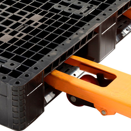 ✓ Fork access from all sides. ✓ Recyclable.injection-molded polypropylene plastic. ✓ Environmentally-friendly alternative to wood. The double-sided black 48" x 40" Rackable Plastic Pallet from Global Industrial provides an environmentally-friendly alternative to conventional wood pallets or skids. One-piece, high-pressure injection-molded polypropylene plastic is ideal for food processing, meat, poultry, and pharmaceutical applications. This 100% recyclable pallet has a strong rib-reinforced design that minimizes dirt and dust collection, will not hold or trap water all while being easy-to-clean and washable. The pallets are stackable and allow 4-way fork access for forklifts and pallet trucks. FDA approved. ISPM 15-exempt for export shipping.