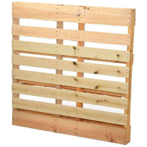 New Hard Wood Pallet 48" x 48" x 4-1/2" Hardwood pallets are an economical alternative to plastic pallets. Constructed with 8 top boards and 4 bottom boards for durability. Stackable to save space. Perfect for storing and shipping drums. Holds up to four 55-gallon drums, or any bulky items. Pallets allow 2-way forklift access. Meets GMA standard. The pallet is not heat treated for international shipping. Price each and sold in pack of 5.