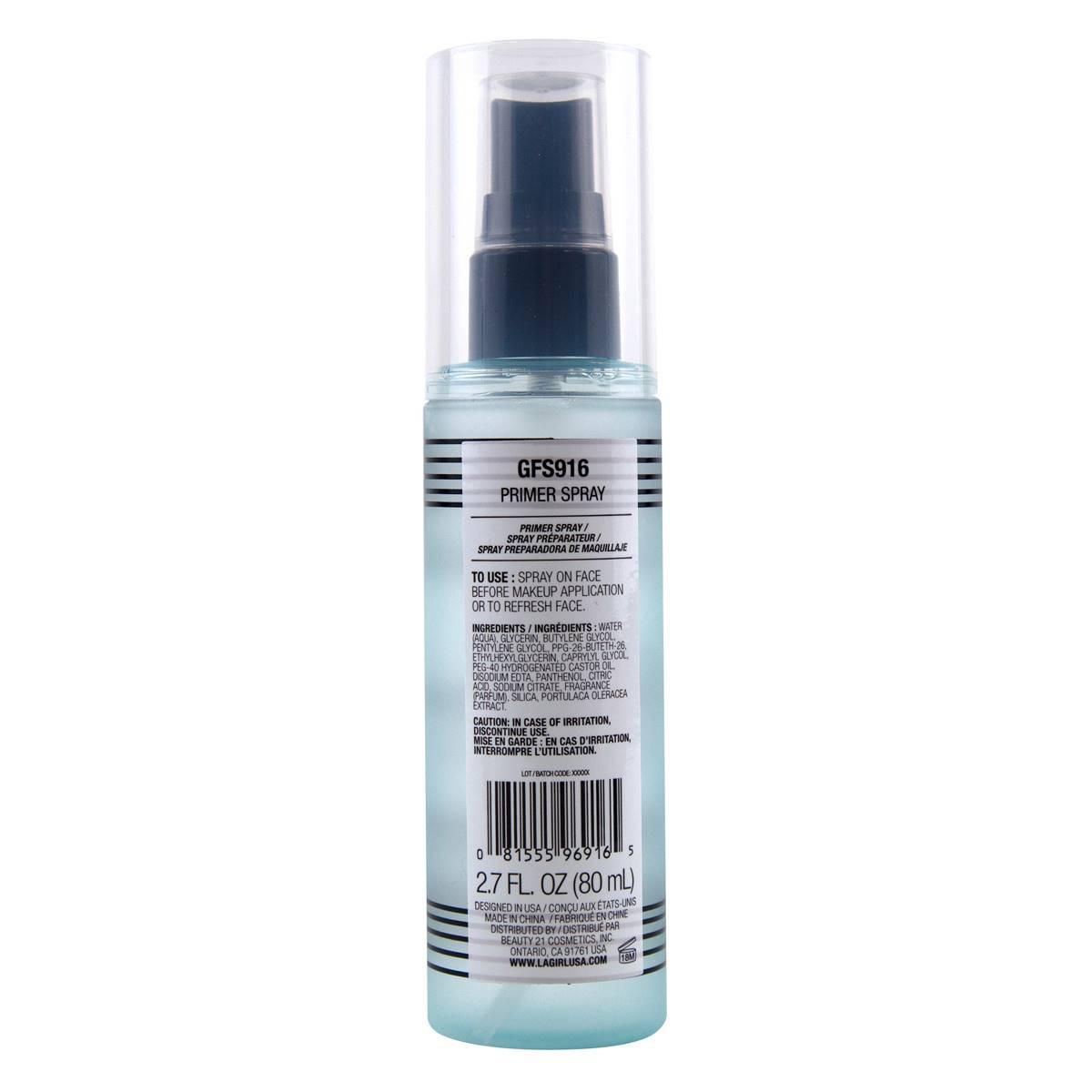 Prime, set, and shine with ease - just spray! L.A. Girl primer spray contains glycerin &botanical purslane extract to hydrate & soothe skin. Spray primer before makeup application to prep skin.