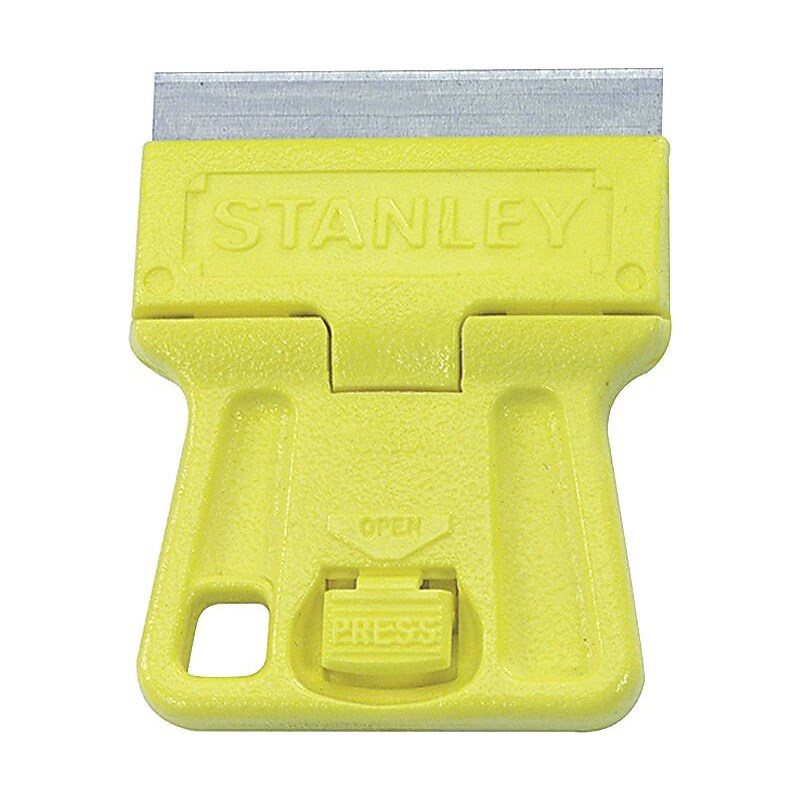 Stanley High visibility mini-razor blade scraper has 1 1/2" blade made of high carbon steel and is for scraping in hard-to-reach places. Scraper is lightweight and features 1 13/16" yellow handle that makes it easy to find in your toolbox. Size: 1 1/2-inch. Length: 1 13/16-inch. Material: High Carbon Steel. Lightweight and economical plastic razor blade scraper. Great For Scraping In Hard-To-Reach Places. High-Visibility Yellow Makes It Easy To Find In Your Toolbox. Blade Reverses For Safe Storage. Uses Standard, Single-Edge Razor Blade. Stanley High Visibility Mini-Razor Blade Scraper is a lightweight and an economical plastic razor blade scraper.