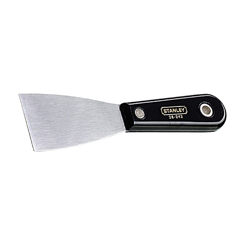 Stanley Stiff putty knife has tempered, hardened, polished blade made of steel for added durability. Knife is extended through shatter resistant nylon handle for comfort grip and features permanently fastened full tang blade. Size: 2-inch. Material: Steel. Hardened, tempered and polished steel blade outlasts other putty knives. Nylon handle resists shattering. Permanently fastened full tang blade. Stanley Putty Knife has permanently fastened full tang blade with nylon handle that resists shattering.